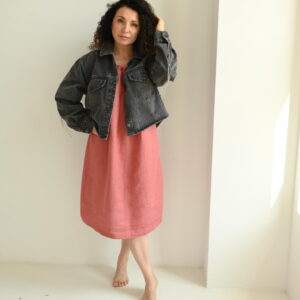 Na tej stronie zamówisz lnianą sukienkę w koralowym kolorze w jednym z trzech rozmiarów: S, M i L.