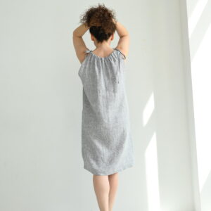 Na tej stronie zamówisz lnianą sukienkę w melanżowym szarym kolorze w jednym z trzech rozmiarów: S, M i L.