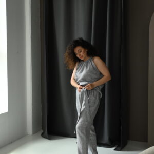 Na tej stronie zamówisz melanżowe szare lniane spodnie na gumce w jednym z trzech rozmiarów: S, M i L. Ale także możesz wybrać inny kolor lnu – sprawdź w naszym sklepie, który kolor lny podoba Ci się najbardziej i podczas zamówienia zostaw nam wiadomość o wyborze koloru.