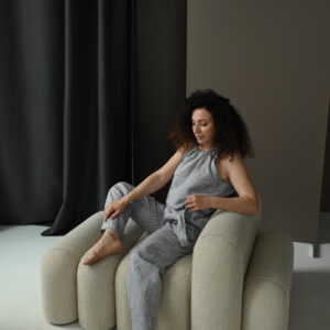 Te spodnie to właśnie te, których potrzebujesz latem. Lniane, na gumce, lekko zwężane ku dołowi, z kieszeniami oraz paskiem. Będą Twoim najlepszym, towarzyszem zarówno w pracy, jak i w podróży. Świetnie się w nich także… odpoczywa.