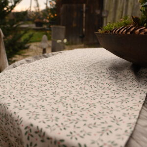 Bieżnik ze świątecznym wzorem łączy w sobie klasykę z delikatnym, domowym urokiem. Jego naturalny, bawełniany materiał w kremowym odcieniu wprowadza do wnętrza atmosferę ciepła i spokoju, stając się doskonałym tłem zarówno dla codziennych chwil, jak i świątecznych celebracji.